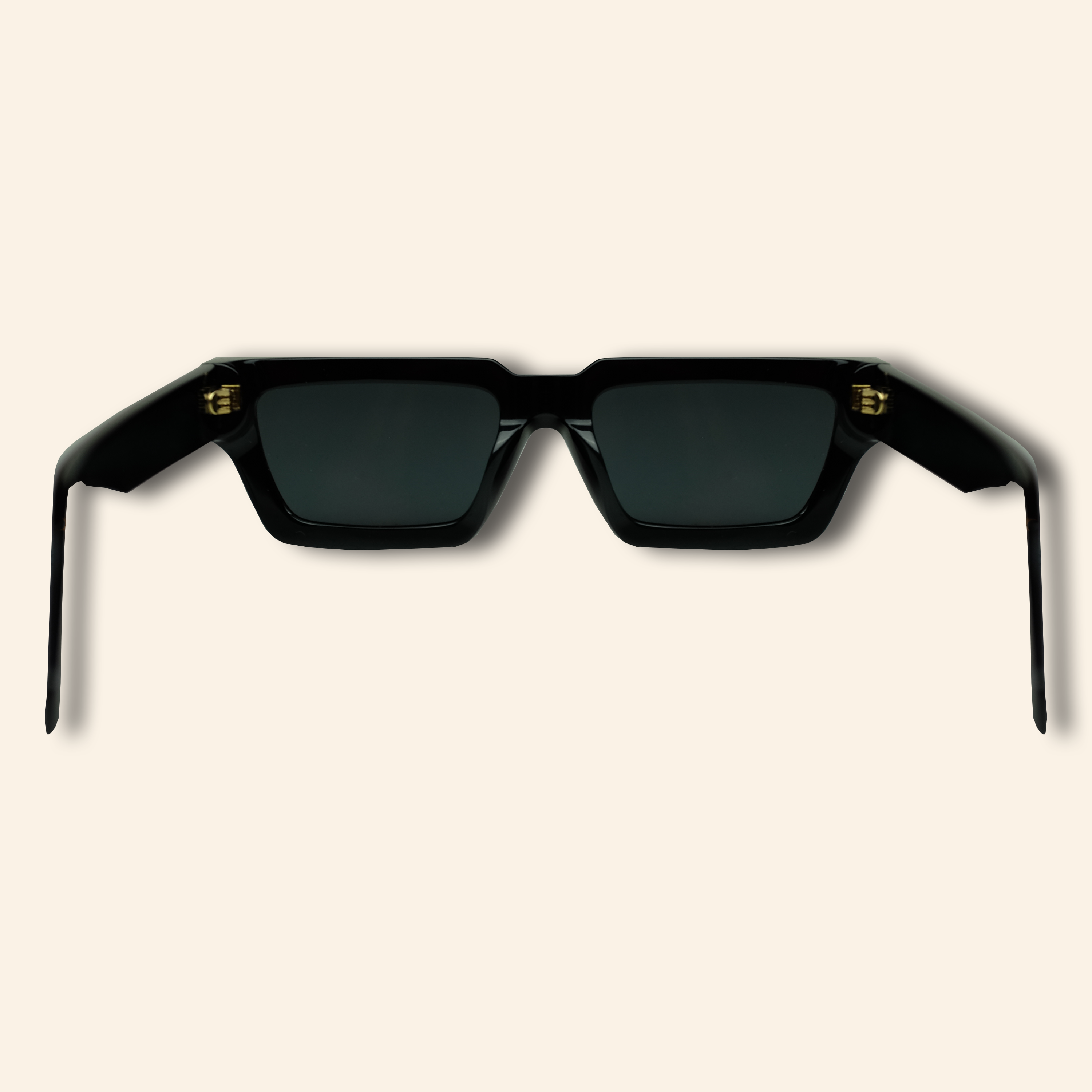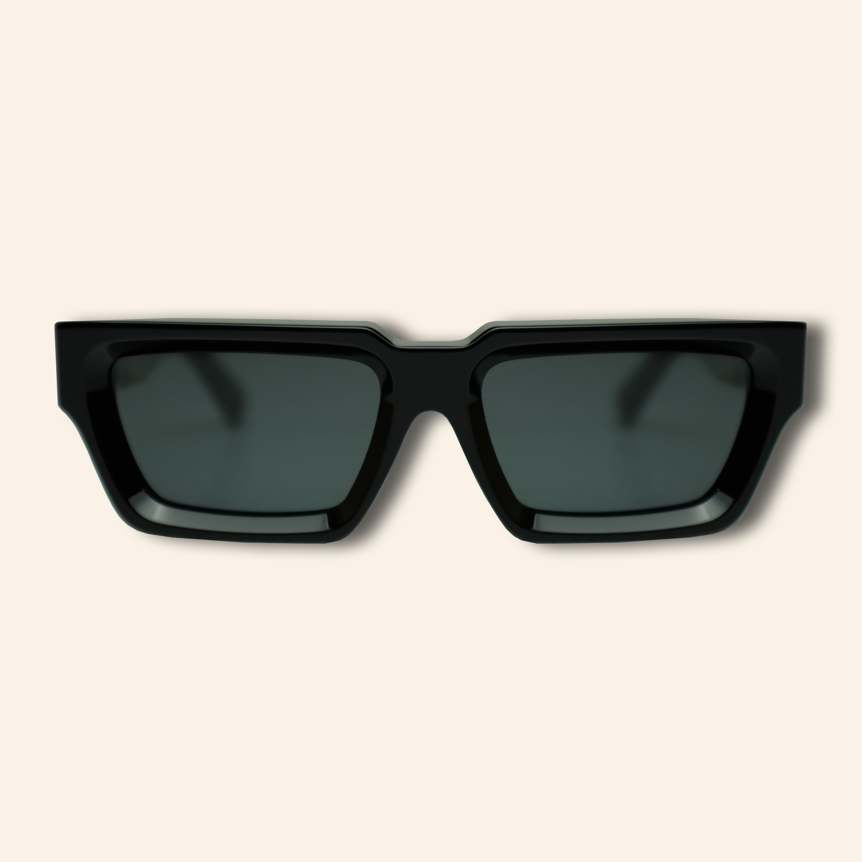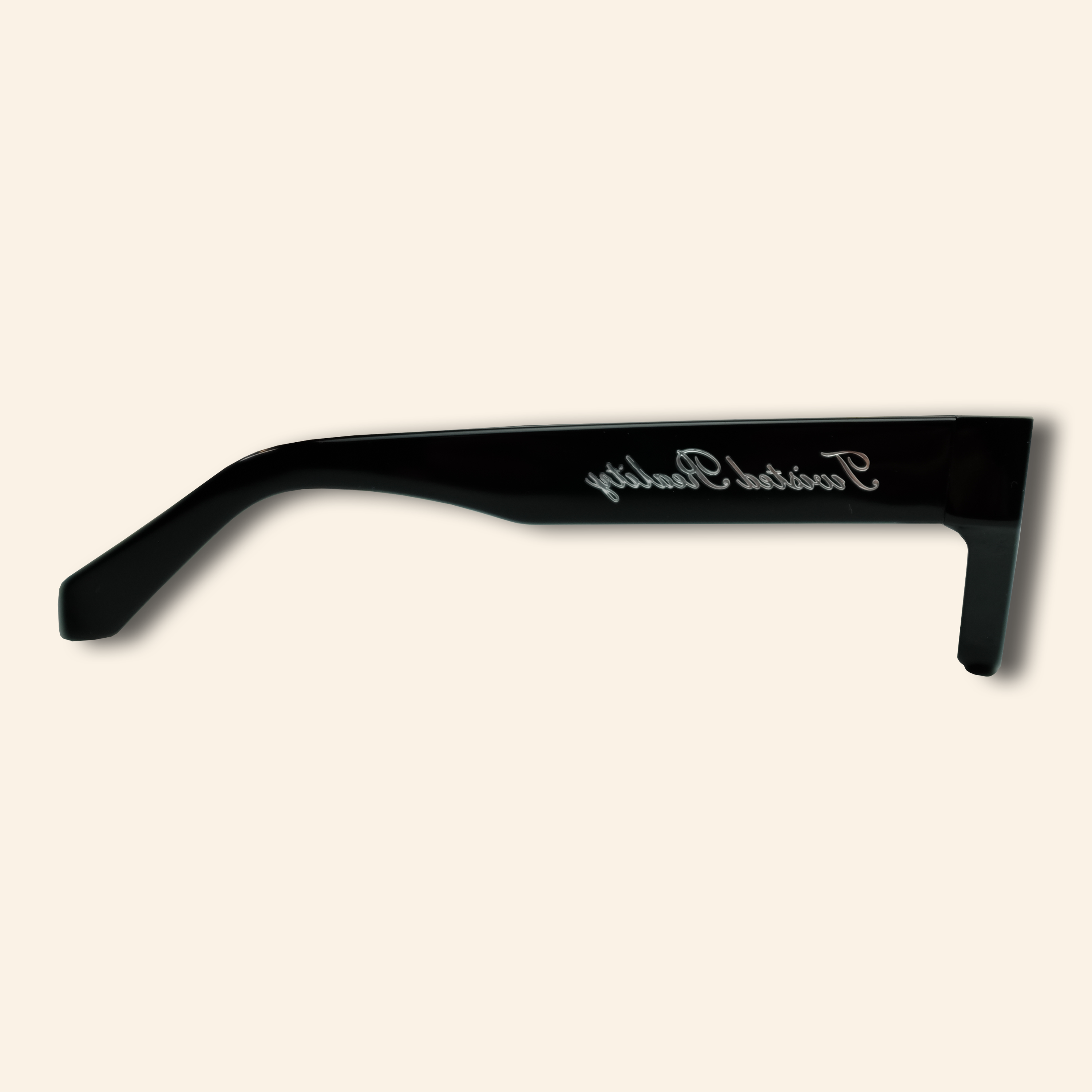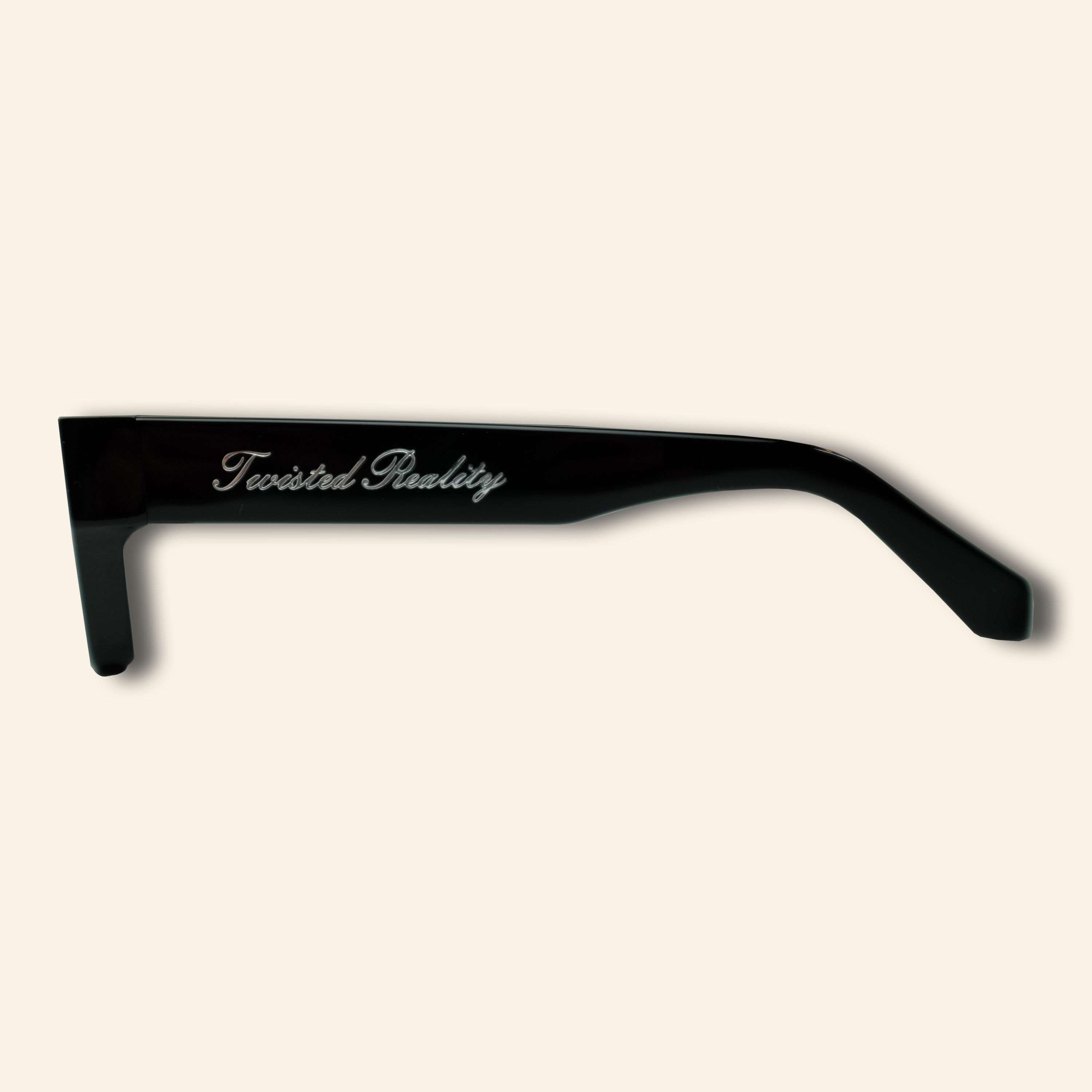 The Lior sunglasses pair stability and sleek with a bold, oversized rectangular frame crafted from premium acetate. Metal hinges provide durability and while the silver metallic Twisted Reality logo at the temple adds a signature touch.